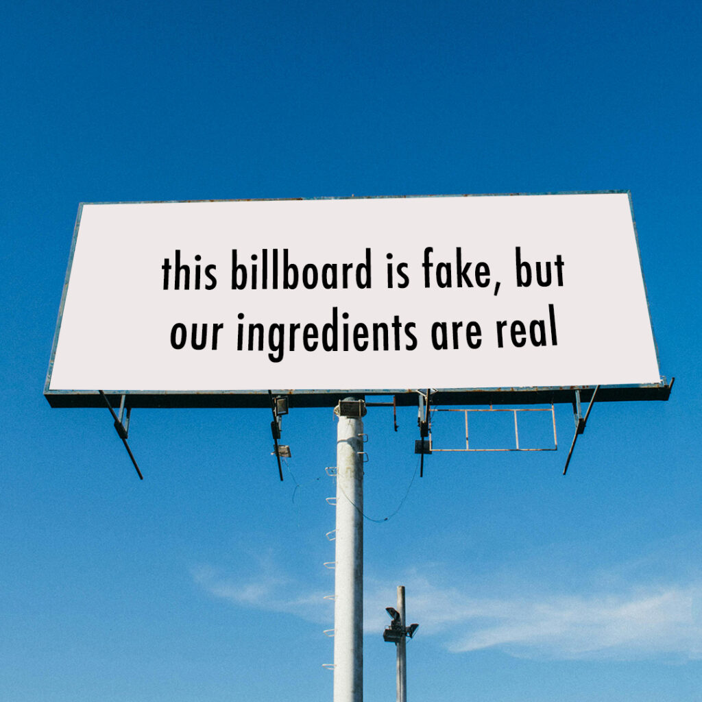 Lately, you might’ve seen one that reads: “this billboard is fake, but our ingredients are real.”