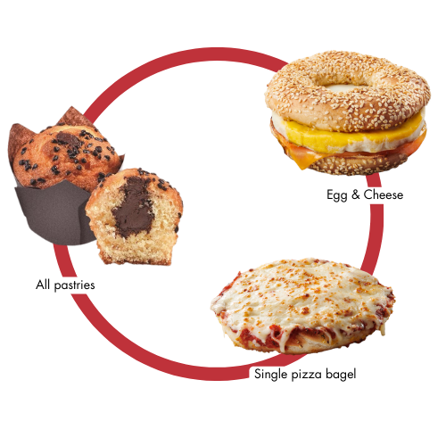 - Any Pastries ((Apple turnover, any muffin, chocolate twist, cinnamon puff, cinnamon bun, chocolatine, any donut)
