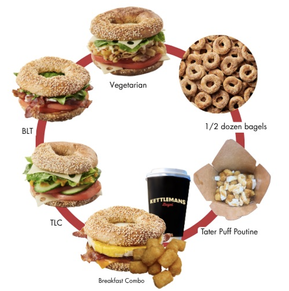 With the new Kettlemans Rewards, you’ll earn 10 points for every $1 you spend.* From classic Montreal bagels to sandwiches and coffee, your everyday favourites now come with delicious rewards.